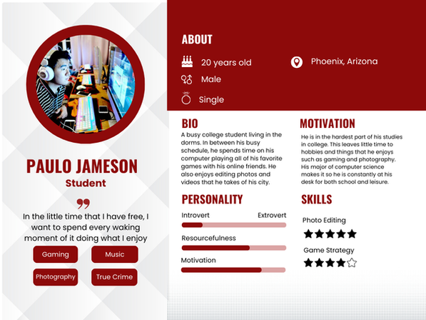Personas are templates of an average user in use of a website, product or service. They represent different demographic and behavioral characteristics that helps businesses better understand their target audience. Personas, showcases the development and implementation of these user personas to improve user experience and customer satisfaction